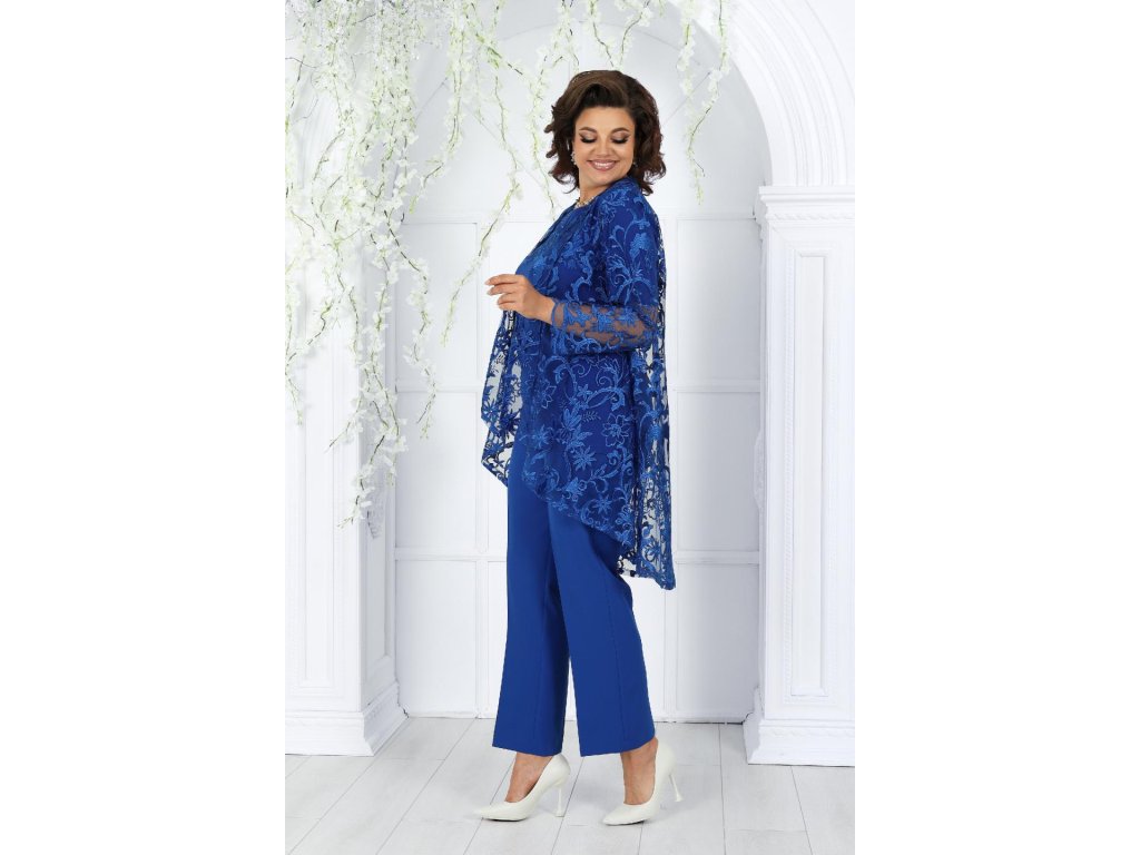 54 (cizí značení 66) - 1/ obvod blůzky přes prsa = do 134 cm, 2/ obvod kalhot v pase = max. do 123 cm (po max. roztažení zřasené gumy v pase kalhot po celé zadní straně), 3/ obvod přes boky = do 138 cm; délka kalhot = 103 cm, délka od rozkroku po spodní okraj = 74,5 cm