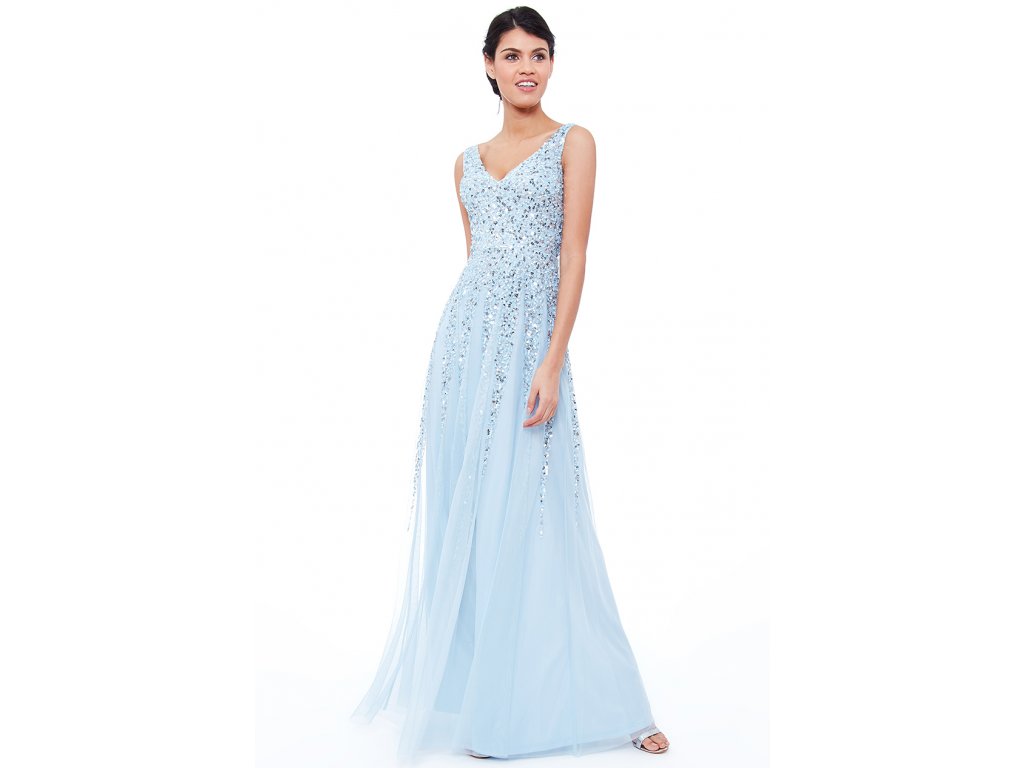 Luxusní společenské šaty Isabella světle modré dlouhé