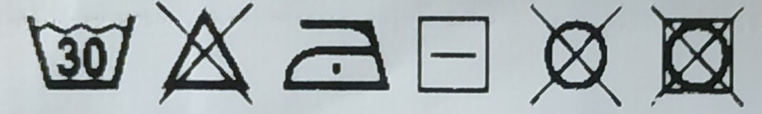 (velmi šetrné praní při maximální teplotě 30 °C, ideálně samostatně nebo v pytlíku; žehlit po rubu)